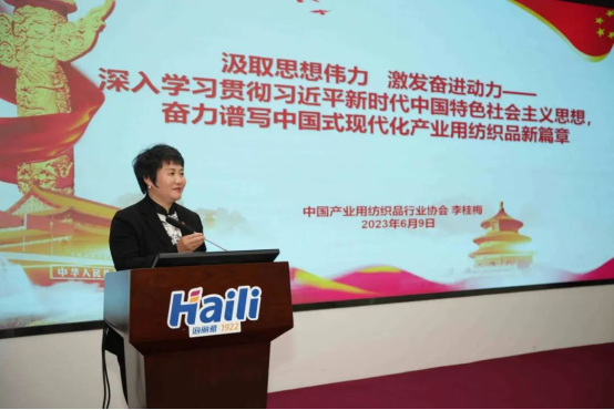 中国产业用纺织品行业协会党支部书记、会长李桂梅以“汲取思想伟力 激发奋进动力”为题讲主题党课,围绕关于中国式现代化的主要论述,以中国式现代化目标引领产业用纺织品行业高质量发展两个方面展开。她指出,中国式现代化“产业用纺织品行业答卷”包括加快建设产业用纺织品现代化产业体系;加快实现高水平科技自立自强;积极促进人与自然和谐共生;积极助力国民经济各应用领域现代化建设。未来,产业用纺织品行业全面落实中国式现代化要求,需在科技创新、产业升级、新业态培育、智能制造、绿色发展和质量保障等方面发力,加强重点领域的攻关,不断释放创新主体创新活力和协同创新能力,提升技术供给能力,形成一批重大创新成果。聚焦新材料、新能源、医疗健康、航空航天、生态环保、国防军工等领域的先进纺织材料开发和应用推广,成为行业原创技术的重要供给源,保障重点技术领域自主可控,产业链、供应链安全可靠,从而更好地服务国家战略,助力实现中国式现代化。