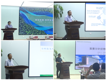 赛得利集团李孝琴、赛得利集团付忠诚、愉悦集团高志超、即发集团刘典波等几位代表分别围绕“赛得利莱赛尔应用分享”、“莱赛尔纤维结构与性能及在纺织染整中的生产经验”、“莱赛尔梭织物染整经验”、“莱赛尔针织物染整经验”做了精彩报告,分享了赛得利莱赛尔纤维的特性和服装设计与应用以及染整生产经验等。