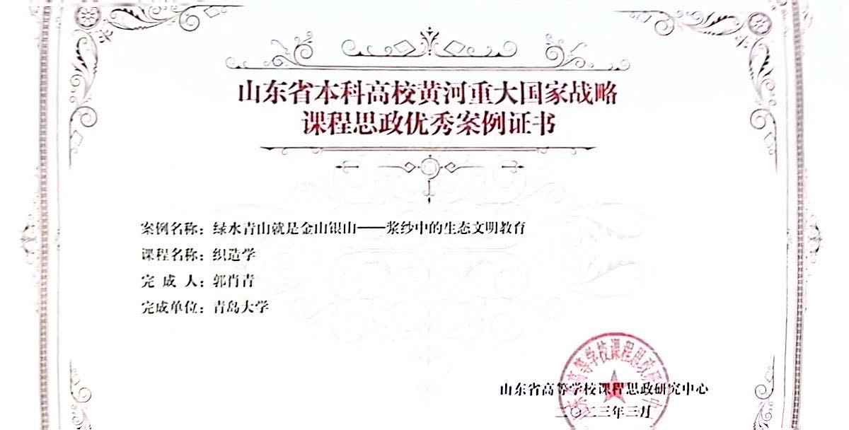 近日,山东省高等学校课程思政研究中心公布山东省本科高校黄河重大国家战略课程思政优秀案例名单,亚洲十大赌博网站热门推荐 郭肖青老师的专业教育课程《织造学》案例获批。