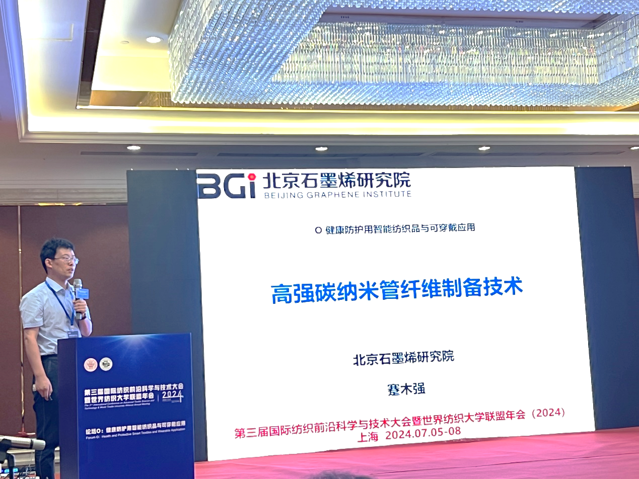 北京石墨烯研究院蹇木强副研究员作《高强碳纳米管纤维制备技术》报告,蹇老师详细介绍了浮动催化CVD法制备碳纳米管纤维的技术、高动态强度碳纳米管纤维的制备技术、碳纳米管纤维丝束连续制备等。