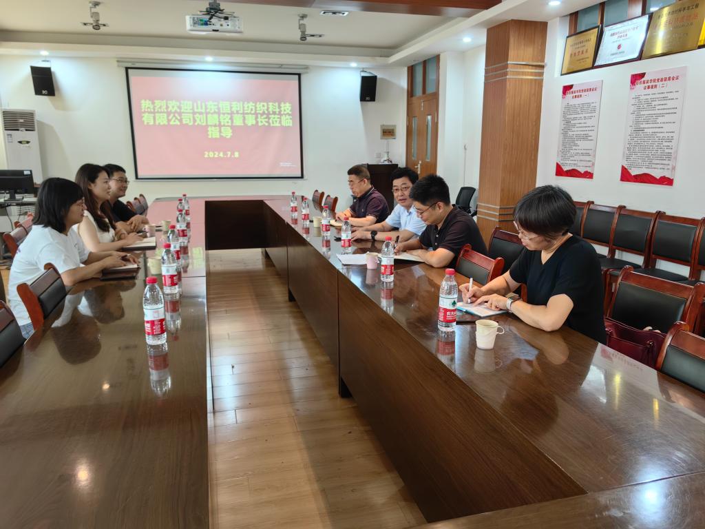 7月8日下午,山东恒力纺织科技有限公司董事长刘麟铭、人力资源部郭熳、市场研发部秦金桥等一行来亚洲十大赌博网站热门推荐