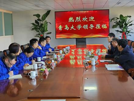 企业负责人寇相东董事长介绍了公司的发展情况,详细阐述了对产业创新的需求,真诚地表示了产学研合作的意愿。夏东伟从学科专业、人才培养、科学研究、师资队伍、资源平台和社会服务等方面介绍了青岛大学的相关情况及在产教融合等方面的特色优势。进一步,双方就科研成果转化、技术交流合作进行了广泛深入的交流。