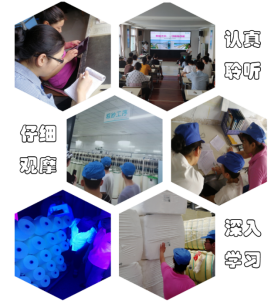 在两周的时间里,我们分成5个小组,分别从不同的工序开始,在各工序的导师带领下,依次深入学习纺纱的整个流程,从前纺、细纱、后纺,再到生计处,我们把在实际生产中学到的和来自课堂的知识一一对应,丰富了自身的纺纱知识体系,真正做到了知行合一。