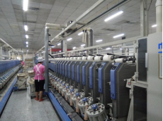 在买买提吐尔逊·阿布力孜学长的带领下,各个小组都深入学习了细纱车间的机器。我们了解到陵县恒丰目前有四种形式的细纱机,其核心为环锭纺,在其基础上有紧密纺、赛络纺、赛络紧密纺。其中以赛络紧密纺的品质为最优。经过进一步的了解,工厂的细纱锭子实际转速在15000-16000 r/min 之间,是比较高产的。影响细纱产量和质量的一个因素是断头,目前还是人工接头,因此在提高产量的办法,一方面是减少断头,另一方面是提高工人操作水平。