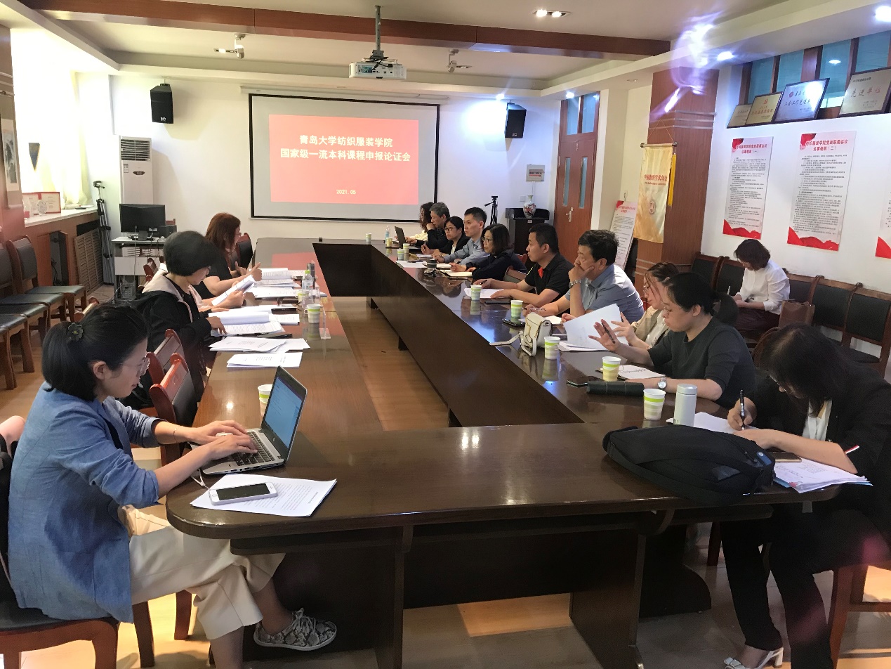 5月29日上午9:00,为落实学校一流课程建设,推进赌博网站推荐 一流课程申报工作,提高申报材料质量,赌博网站推荐 在睿思楼407会议室举行了一流课程申报专家论证会,教育部纺织类专业教学指导委员会副主任、中国纺织服装教育学会会长倪阳生,国家级一流本科课程负责人、江南大学教授谢春萍,国家级一流本科课程负责人、天津工业大学教授王建坤担任论证专家,会议由赌博网站推荐 院长许长海主持,院党委书记高育红、副院长张春明以及赌博网站推荐 一流本科培育课程负责人参加了本次论证会。